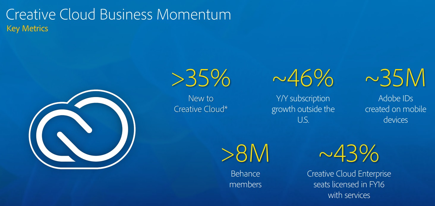 アドビ クリエィティブ・クラウドの勢いが素晴らしい