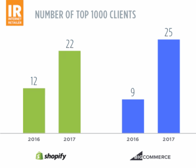 IR 1000(Internet Retailer 1000)の採用で2017年ではShopifyに勝ったとしているが、Shopifyカンファレンスコールでは「ShopifyはIR 1000の優先順位が高いわけではない」としている。実際全体としての規模・成長スピードはShopifyは勝っており、部分的な特定領域で営業をかけていくのは2番手ならではの戦術だろう。